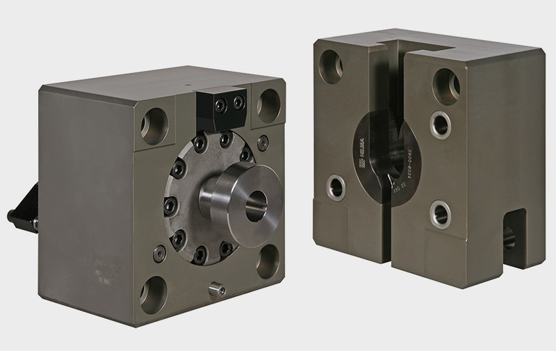 I bloccaggi idraulici integrati della Hilma sono studiati per integrarsi perfettamente con il piano tavola della pressa. L’opportuna lavorazione del piano tavola consente di ospitare le staffe rotanti, proposte anche nella variante a scomparsa. Esistono inoltre gli elementi di accoppiamento rapido per barre di presa, proposti in numerose varianti, utili nelle presse a trasferta.