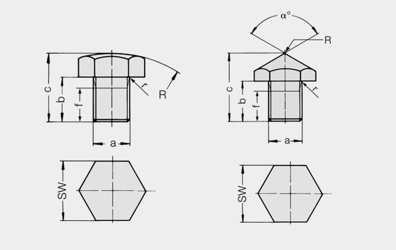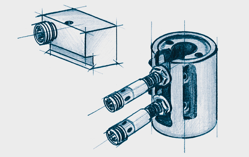 Tasselli di pressione con filettatura metrica standard ISO. Sono disponibili un vasto range di accessori per i cilindri a basetta.