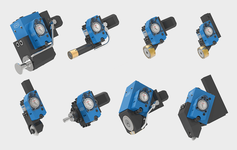 La vasta gamma di utensili a rullo singolo annovera diversi componenti standard, ma la ECOROLL è in grado di fornire soluzioni fortemente personalizzate, per far fronte ad ogni applicazione. Gli utensili a rullo singolo sono costituiti da un corpo utensile, da una testa di lucidatura e da un codolo dell’utensile, dotato di un gruppo di molle senza gioco, a basso attrito e ad azione progressiva. Nella versione standard il corpo dell’utensile contiene un comparatore che indica indirettamente la forza della molla (mostrandone la deflessione). I sistemi a rullo singolo possono essere anche dotati di comparatore digitale ECOsense, indicante la forza di lavorazione in tempo reale.