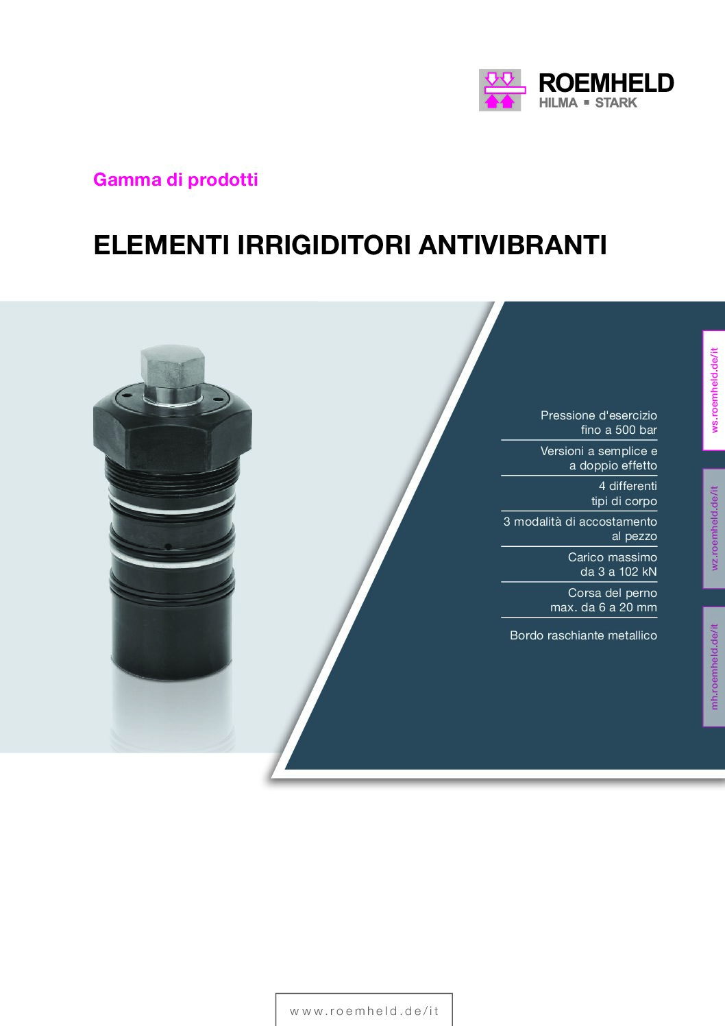 Elemento irrigiditore antivibrante ROEMHELD B1914, perno di irrigidimento retratto in condizione di riposo. Estensione idraulica, accostamento con forza della molla, a semplice effetto con ritorno a molla.